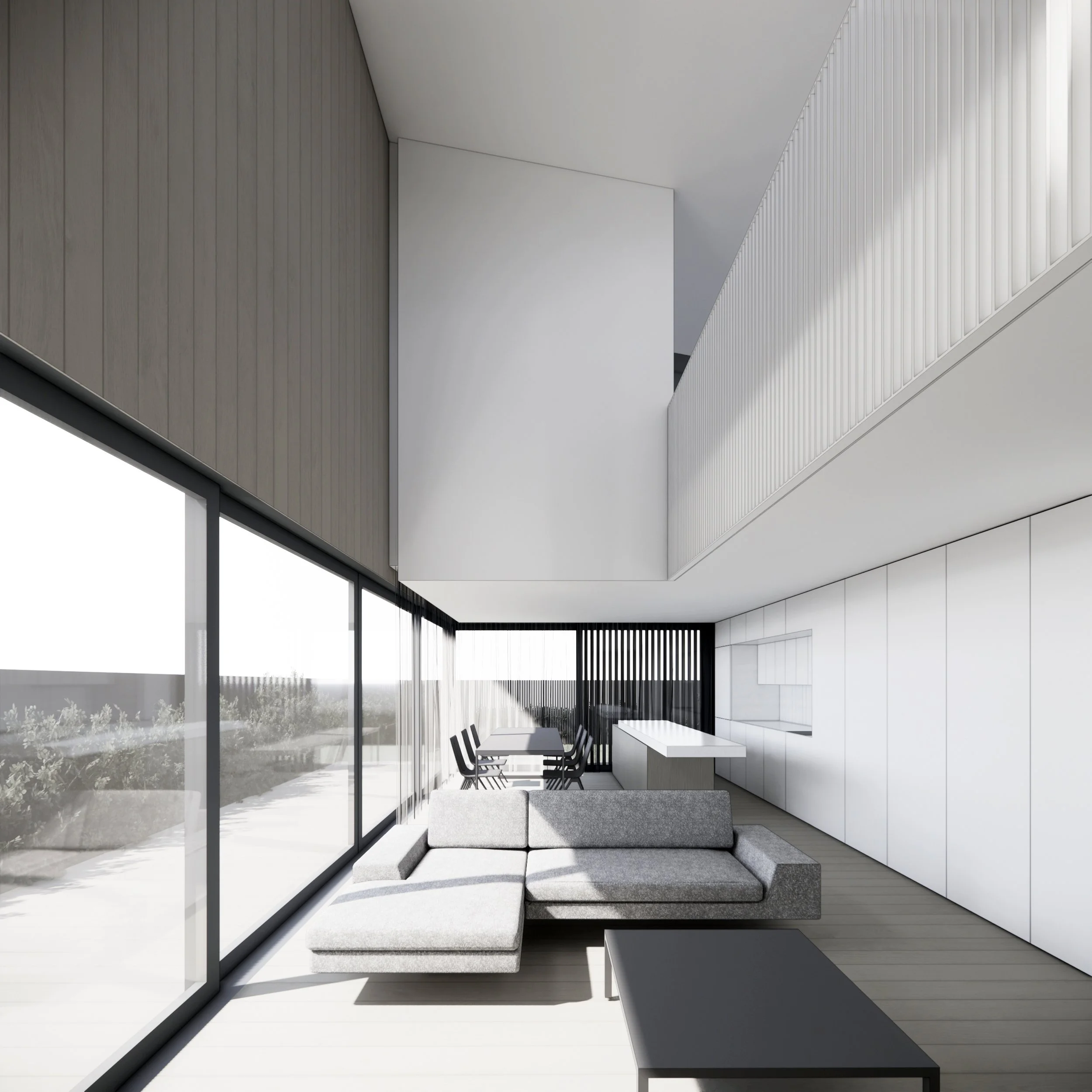 A range of shared internal and external living spaces, located at ground and first floor, allow the overlapping edges of the spaces for the 3 families to shift as circumstances change, a solution to future proofing the house.
